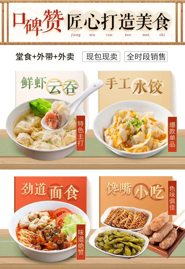 傳承精湛手工工藝,嚴格精選優(yōu)質食材,新鮮現(xiàn)包,老少皆宜。